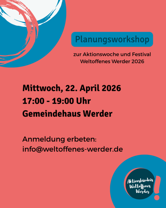 Das Aktionsbündnis Weltoffenes Werder ist ein unabhängiger und überparteilicher Zusammenschluss verschiedener Institutionen und Einzelpersonen und setzt sich für eine offene, vielfältige und solidarische Gesellschaft ein.